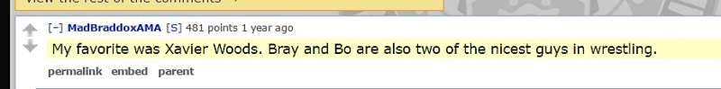 Former WWE Superstar Brad Maddox (real name Tyler Kluttz) was part of an AMA (Ask Me Anything) on Reddit last year, and he was asked about his favourite person backstage. Maddox replied that it was Xavier Woods. He also added the names Bray Wyatt and Bo Dallas and called them two of the nicest guys in wrestling. One year later, he would be embroiled in a massive controversy with Xavier Woods and Paige as the latter's private pictures leaked on the internet.