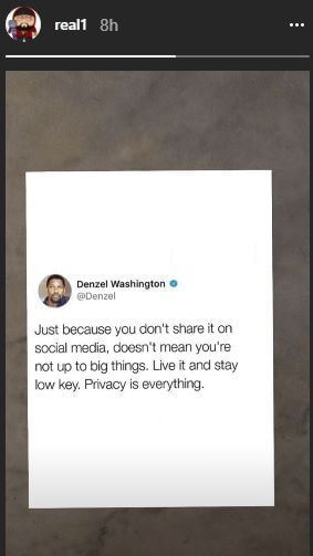 The post that he shared was a quote from Denzel Washington. It said that even if a person is not sharing things on social media, that does not mean they are not up to big things.