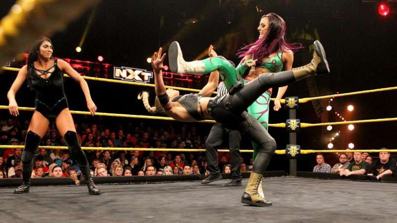 NXT started off this week with footage recorded prior to the show. We see Asuka walking to the arena after a media appearance when she gets jumped by Billie Kay and Peyton Royce. Kay distracts Asuka as Royce attacked her from behind. They double teamed Asuka before sending her back-first into a van. Royce then kneed Asuka in the gut before Kay poured water all over Asuka and humiliated her. The Aussie duo then left as Asuka lay on the ground.