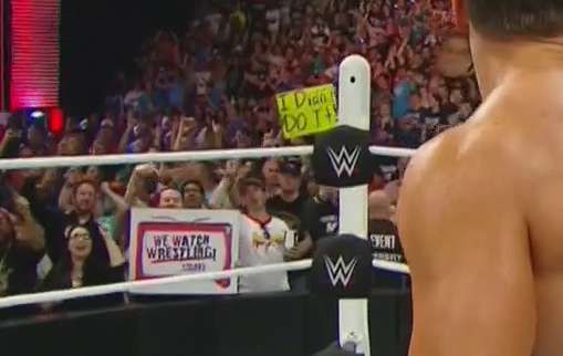 What the hell does sports entertainment even mean? It's called professional wrestling, dammit. This fan made his feeling about the term clear during Raw on Monday night. We watch wrestling and that's the bottom line.