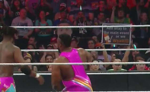 The Wyatt family turned up on Raw fresh from sharing screen time with The Rock on Wrestlemania to a monstrous reaction from the crowd. Though there were many Wyatt signs in the crowd on the night, this one took the cake, “Add Bray to the main event or we Wyatt!!!”.