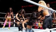 AJ was beaten up by the Total Divas after she ran in to interrupt a match between Brie Bella and Natalya. Stephanie intervened and announced a Fatal Four Way match between the lot.