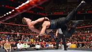 Rollins continues dominating throughout the commercial break but Zayn tries to fight back with a tilt-a-whirl slam. He follows it up with a sunset-flip powerbomb for the near fall. Zayn goes for the Helluva kick following an exploder suplex to the corner. However, his bad ankle lets Zayn down and Rollins counters with a jumping knee.