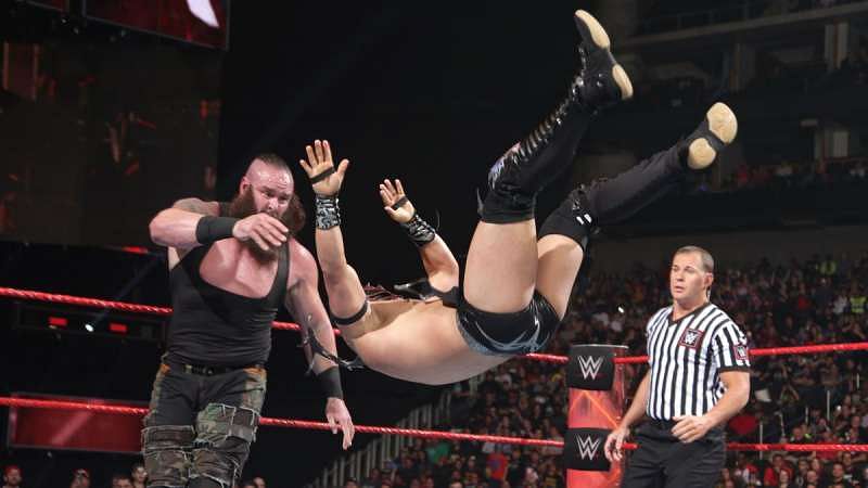 The match started with Kalisto giving low kicks to Strowman. Strowman then manhandled him, and Kalisto continued to use flashy offence to Strowman but was eventually caught and flung high onto the ground. The match seemed to be have been coming to an end, but Kalisto countered and was very close to getting Strowman into the dumpster.