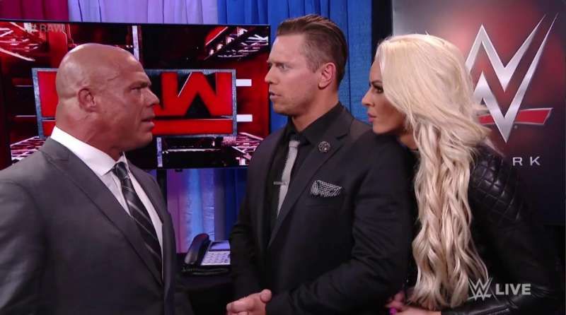 The Miz tried to announce his partner, but no one came out. Kurt Angle then came out and said that The Miz was having a match, whether he had a partner or not.