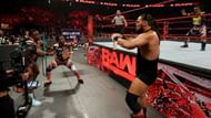 The match had already begun after the break. Anderson dominated Reigns but it didn’t take long for Reigns to flip the switch. The numbers game began getting the better of Reigns, and as Gallows and Anderson were viciously attacking Reigns, the match was called off in a disqualification.