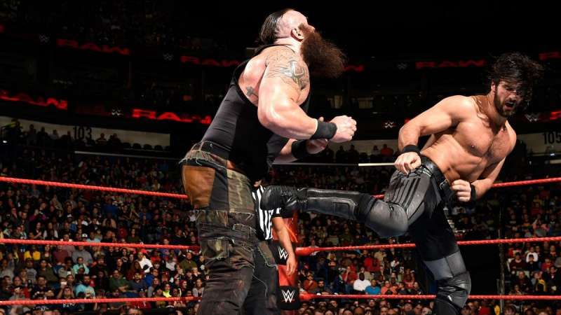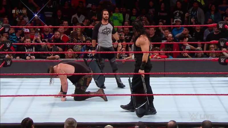 After the commercial break, Rollins hit the enzuiguri outside, followed by a suicide dive. He kicked him once he entered the ring again, but when attempting a pin, Strowman kicked out at 1. Strowman was still on his feet despite a flying knee.