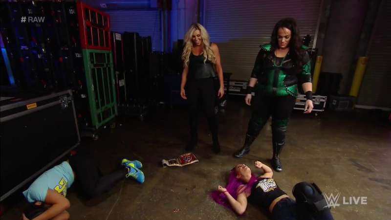 Charlotte entered the scene and called out Sasha for pretending like she cared about Bayley, and added that Banks couldn’t even give her advice on how to win. After some back and forth jabs, Nia Jax came in and kicked Sasha Banks from under her knee. Charlotte then began to assault Bayley. Nia Jax teased attacking Charlotte but walked away instead.