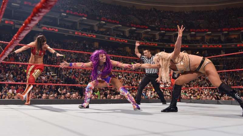 Charlotte took another jab at Sasha Banks, who began attacking her, while Nia and Bayley got into a scuffle themselves. A tag team match was then announced