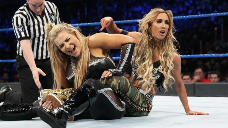 Result: Carmella pins Natalya with a roll-up after a confrontation between Natalya and Nikki Bella.