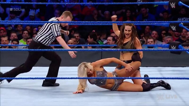 Naomi came in and hit the Rearview on Logan to pick up the win for her team.