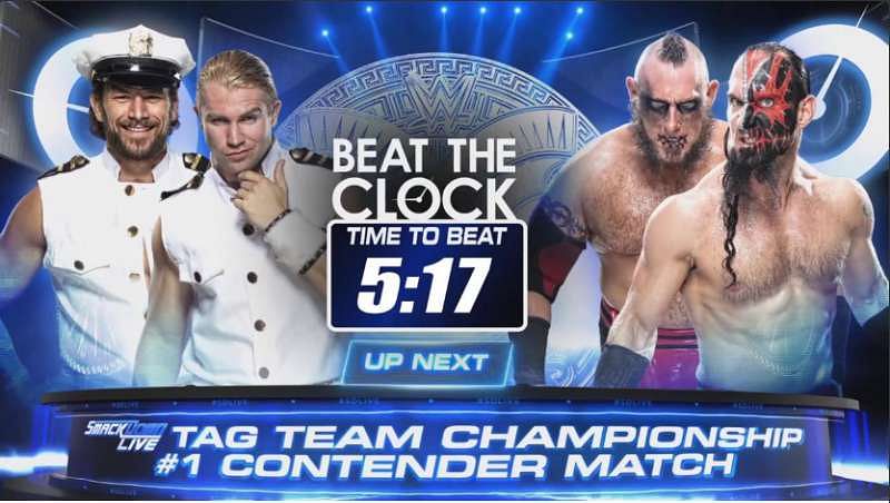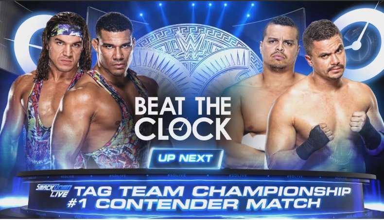The Colons ( who are basically Primo and Epico) go up against the Alpha in SD Live’s first ever Beat The Clock challenge since the Brand Split. Primo initially controls Gable and attempts to keep him grounded, frequently tagging in Epico with a view to maintain the fight in their corner.