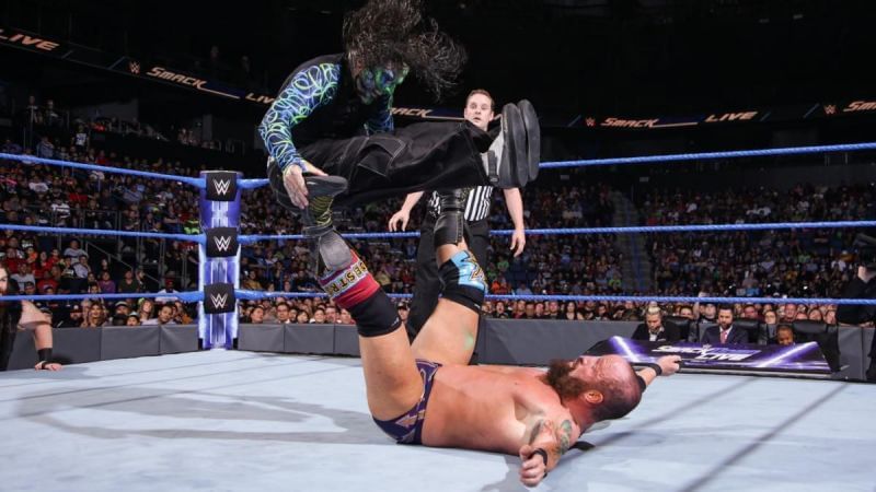 Ellsworth came to the ring and demanded Asuka face him in the ring after her attack on him last week. Paige's music hit and she walked to the ring, announcing that Carmella will be facing Asuka in a title match at Extreme Rules. Ellsworth said Asuka didn't deserve a rematch and Paige disagreed. She also scheduled a match between him and Asuka next week on Smackdown