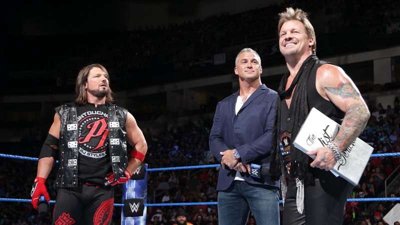 Shane McMahon introduced Chris Jericho to SmackDown Live. Shane said that he was thrilled to have him on the blue brand. He announced that he would be defending the US Title against Kevin Owens later in the night. AJ Styles then made his way out.