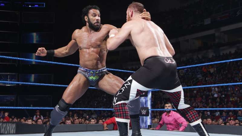 After missing a jump from the top turnbuckle, Jinder struck him with a vicious knee, but as he tried to rebound and take another shot, he was met with a clothesline from Zayn. Sami landed a crossbody after that.