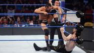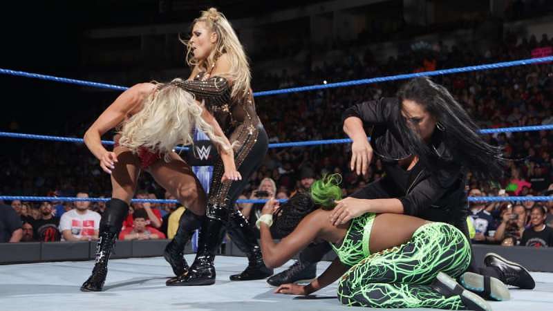 Charlotte Flair was interviewed backstage. She said that the “welcoming committee” couldn’t change the fact that she was on SmackDown Live. The interview ended abruptly after the trio of women surrounded her. She tried to fight them off but was beat down. Tamina then welcomed her to the blue brand.
