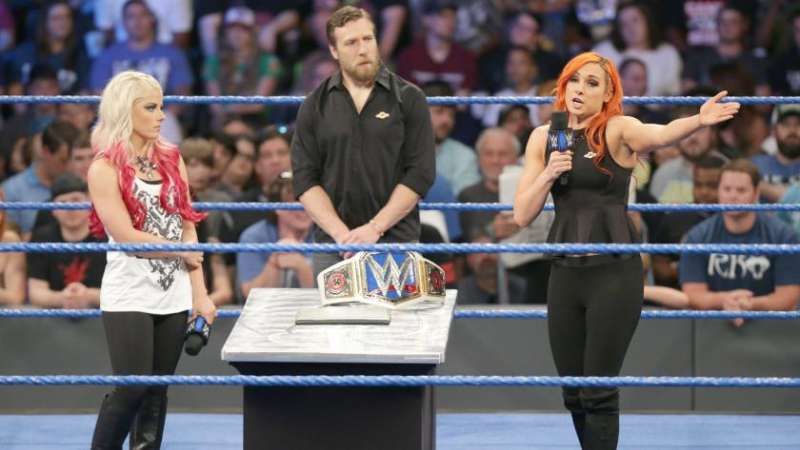 Alexa Bliss, though small, is an extremely fiery competitor and attempted to show how dangerous she is by attacking Becky Lynch and throwing the contract table on top of her. However Becky chased her down the ramp to even the odds.