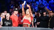 At this point, Charlotte, dressed in a red Raw shirt, was seen making her way to the ringside seats from the crowd, waving her ticket around signifying that she was there as a spectator. We cut to commercials.