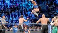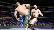 Mikey tagged in Simon Goth off the Vaudevillains. Jey Uso got tagged in again and connected with a Lariat press. Jey Uso continued to beat down on Simon Gotch. Mojo Rawley tagged himself in at this point and Simon Gotch ran into a scoop slam by him.