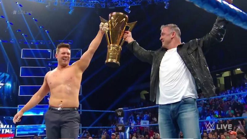 The Miz introduced the birthday boy Shane McMahon who came into the ring and we learnt that the Miz had ordered not one, but two cakes from Shane's favourite bakery. He then handed Shane his birthday present and it was a pair of Jordan 33's that he wanted Shane to wear for their Royal Rumble appearance. Then the Miz showed off a video package he had put together on the Titantron showcasing his career and their friendship.
