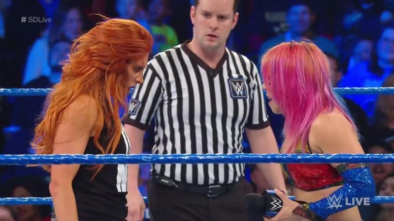 SmackDown Live kicked off with Becky Lynch arriving in her car backstage. The crowd chanted for Becky and she was stopped by Kayla Braxton. She said she's going to answer the question of whether she's ready for Asuka in the ring.