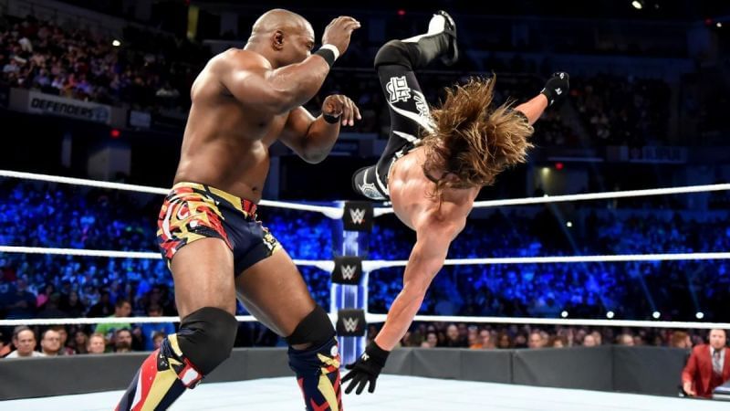 AJ Styles and Shelton Benjamin began the competition in a series of holds, with Benjamin slowing AJ Styles down early. Styles began to fight back and stopped him in his tracks by lifting his legs to the face. He jumped for the Phenomenal forearm but Benjamin quickly caught him with a flying knee.