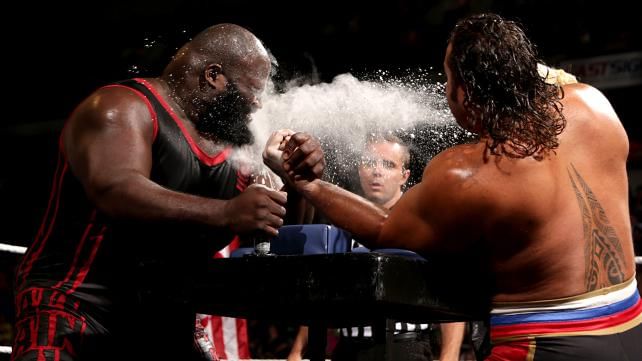 Even though The Ravishing Russian Lana dedicated Rusev’s Arm Wrestling Contest against Mark Henry to Vladimir Putin, The World’s Strongest Man defended American by cleanly beating his foreign adversary. Rudy Charles was the referee for this one. During the first lock-up, Rusev’s hand slipped. Henry won after they locked up a second time. Lana argued with the ref, who then spoke with Cole. Cole said Rusev and Lana asked for a rematch, one in which they both use their left hand. Henry obliged.