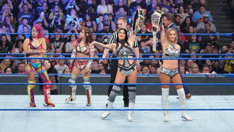 Asuka and Kairi Sane defeated Peyton Royce and Billie Kay by countout on last week's SmackDown and it seems like a rematch is due. Also, Mandy Rose and Sonya Deville have a match against the champions next week, with a victory for them putting them right into contention for the Tag Team titles. They will probably win, as the IIconics always lose, and a triple threat tag team match is announced for SummerSlam.