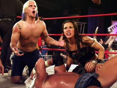 But the match that first put TNA on the map was the Ultimate X match – a variation of the ladder match, but with two interlinked cables having a title hanging from their intersection above the ring – won by a charismatic youngster named Michael Shane. Shane was the cousin of the legendary Shawn Michaels and took a variation of HBK’s name as his ring name and used his Superkick as his finisher too.