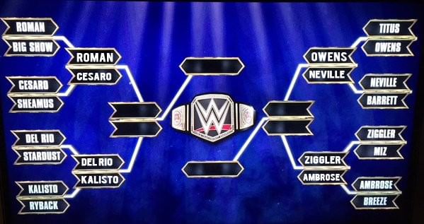 - Smackdown also saw the remaining first round matches of the WWE Title Tournament being held, that saw a surprise winner in Kalisto who defeated Ryback. He goes on to face his fellow countryman, Del Rio in the quarterfinals. Below is the updated bracket of matches: