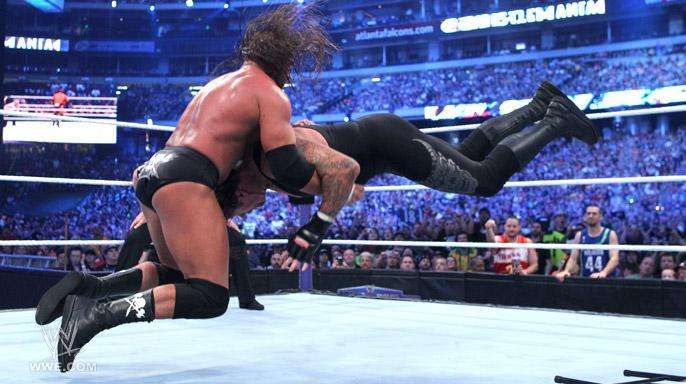 The Undertaker and Triple H competed at WrestleMania 27 in a No Holds Barred match. Taker was severely tortured by the 'Game' right from the start. Triple H tried to attack the Phenom with weapons while Taker chose to use his fists to take down Triple H.