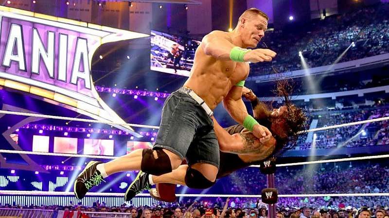 After headlining WrestleMania for three straight years, John Cena was bumped down to a mid card match at WrestleMania 30 with Bray Wyatt. With no championships up for grabs and nothing on the line, it was a breath of fresh air for Cena.